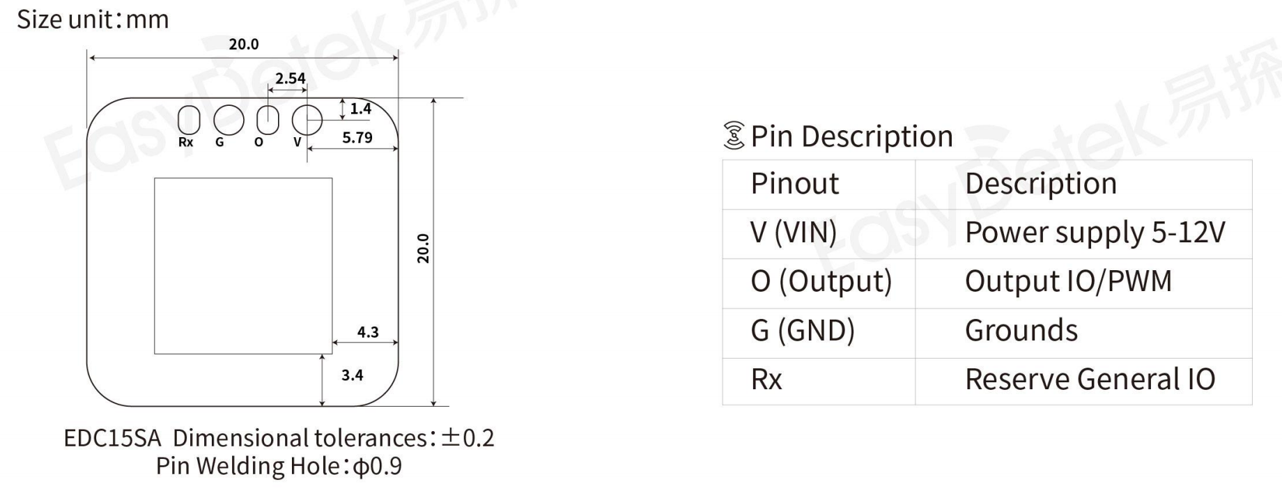 sensingRadius 3-5m